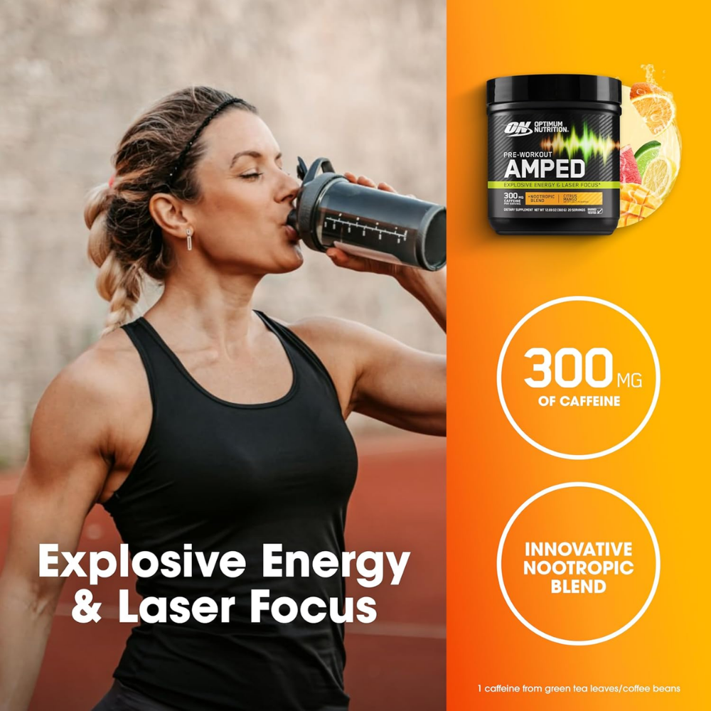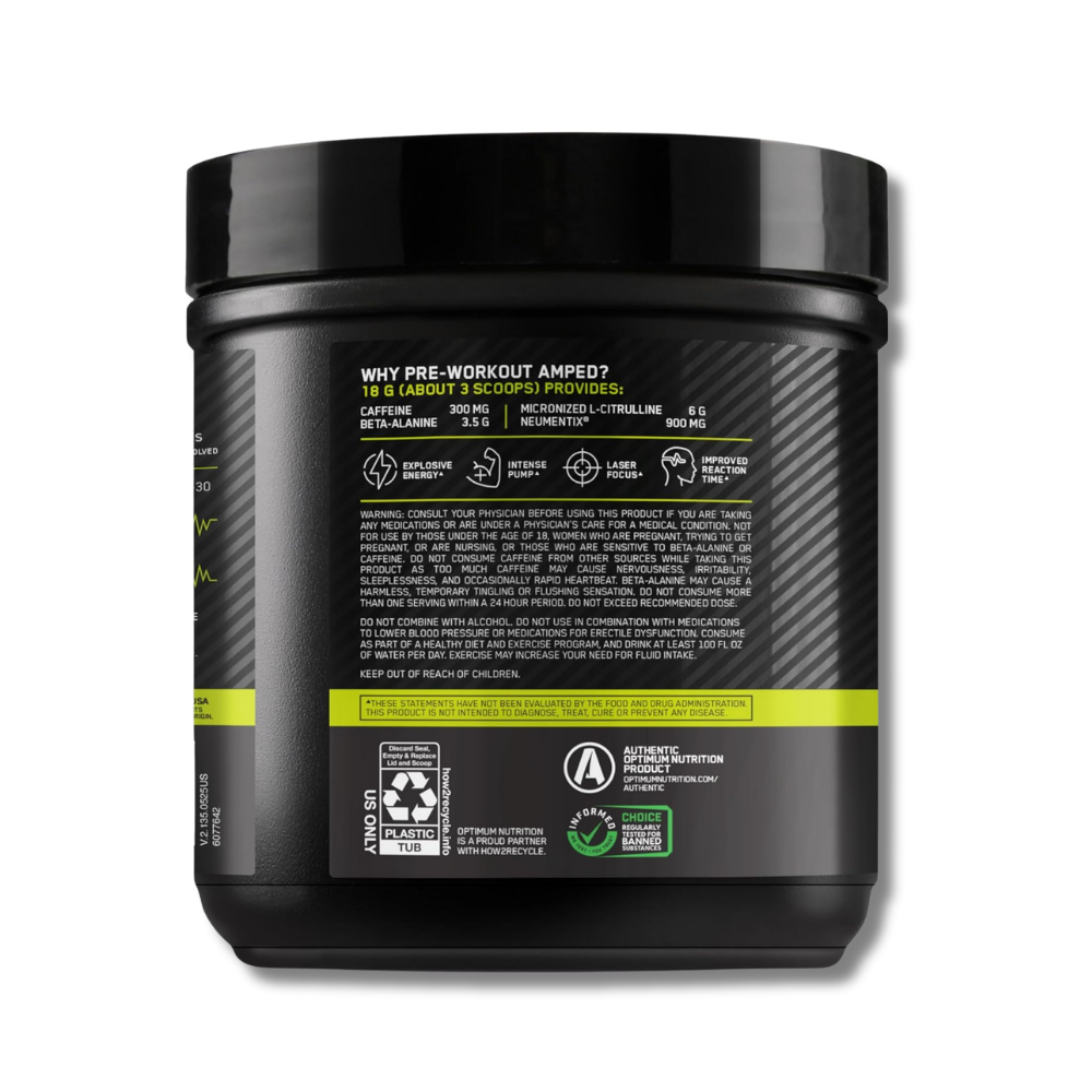 Optimum Nutrition AMPED Pre-Workout is a high-stimulant pre-workout supplement designed to support maximum energy, focus and workout intensity.