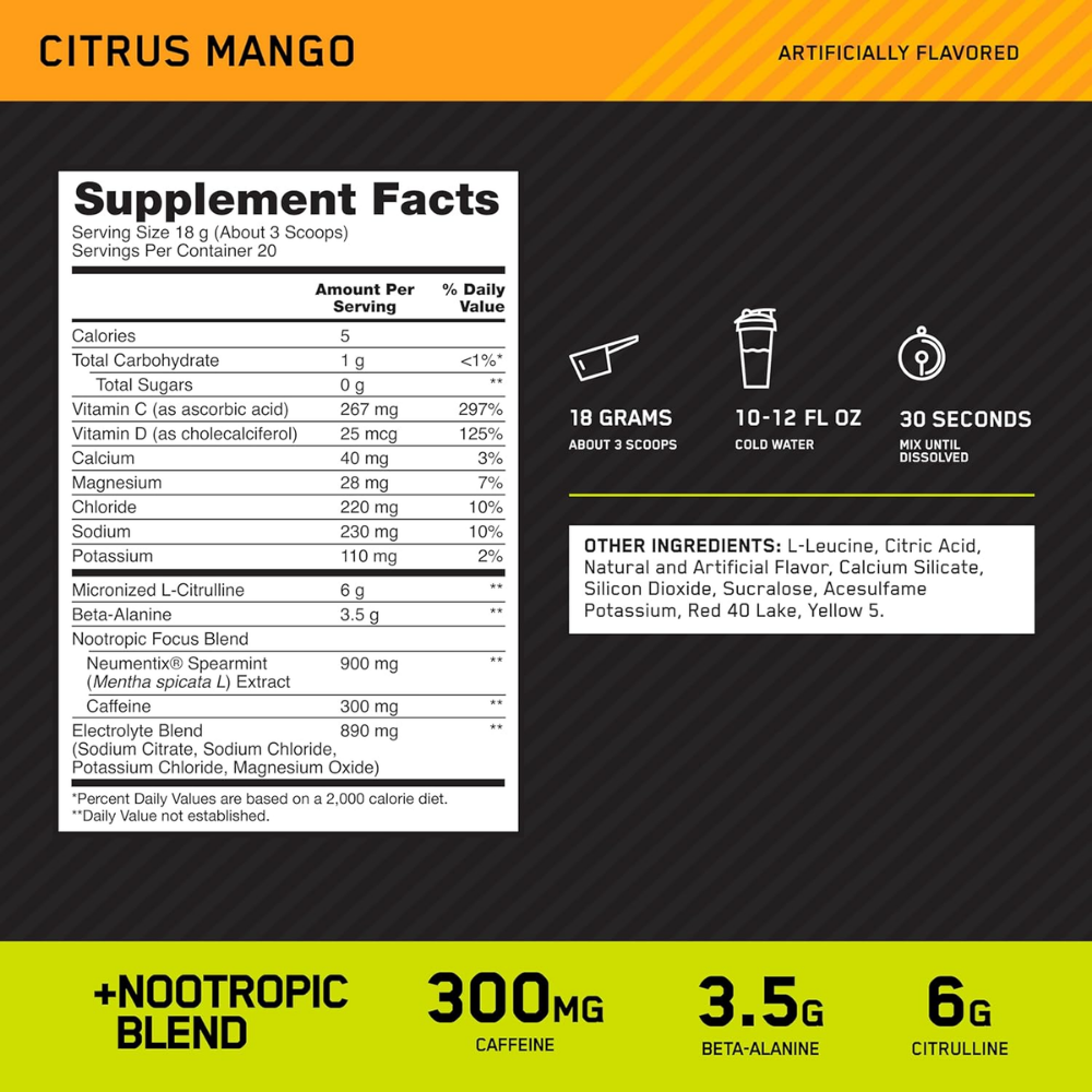 AMPED Pre-Workout Optimum Nutrition 20 servings