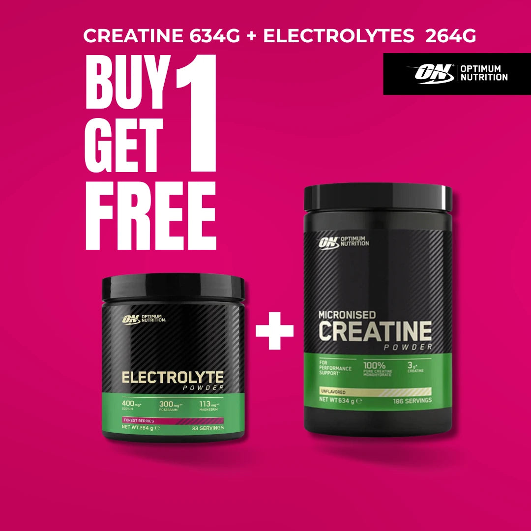 This performance-focused bundle combines Optimum Nutrition Micronized Creatine Powder with a FREE ON Electrolyte formula, delivering a powerful duo for strength, endurance, and proper hydration. Perfect for athletes who train hard and expect proven results.