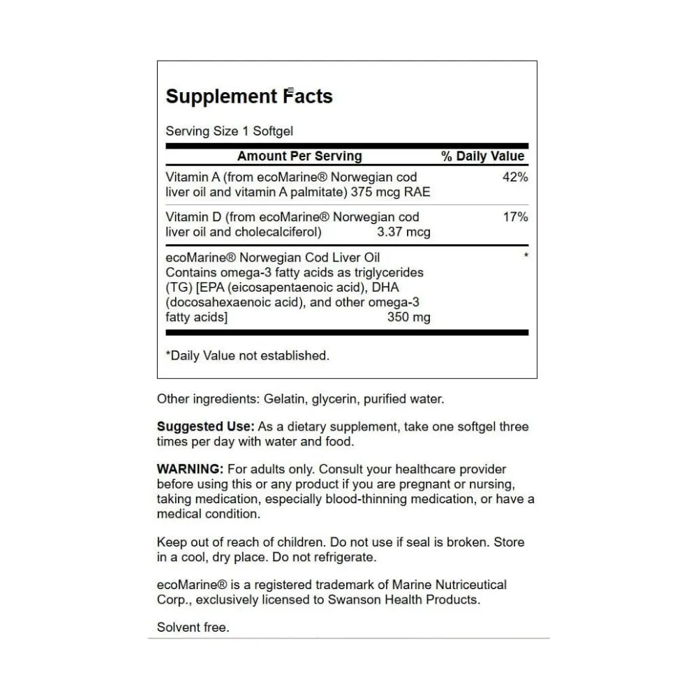 Norwegian Cod Liver Oil Swanson - 180 softgels