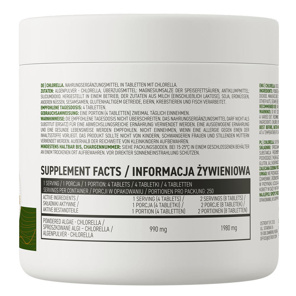 OstroVit Chlorella offers a potent source of essential nutrients derived from green microalgae. Rich in vitamins, minerals, chlorophyll, and unsaturated fatty acids, it supports overall health and wellness.