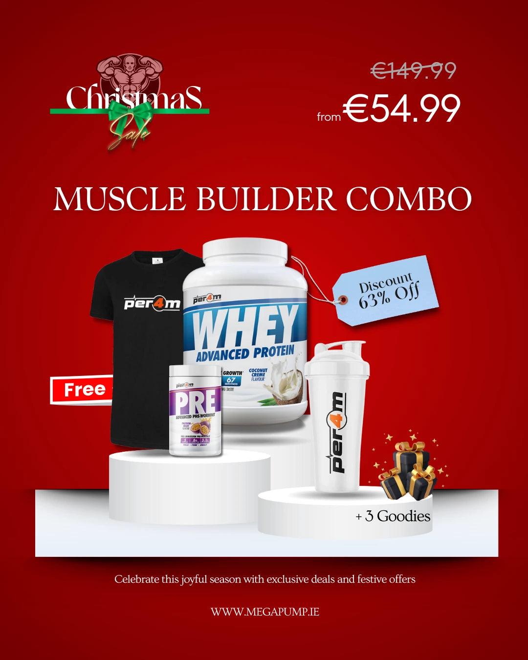 Per4m Muscle Builder Combo is a complete, high-value bundle designed to support muscle growth, strength and peak training performance. This set combines premium Per4m supplements with exclusive extras to give you everything you need to level up your workouts.