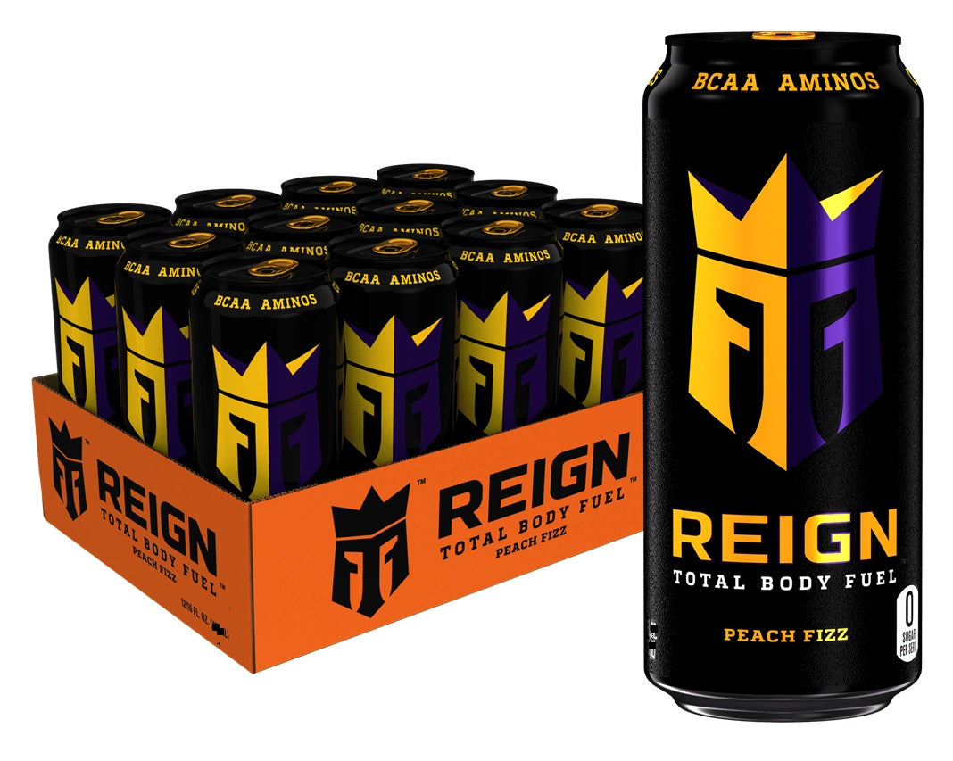 Reign Drink is blended with BCAAs, 300 mg of Natural Caffeine, CoQ10 & electrolytes, REIGN Total Body Fuel is designed for your active lifestyle. Offering zero sugar, zero artificial flavors and colors.