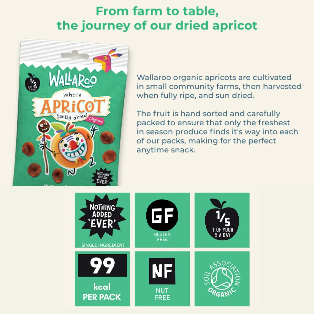 Firm and chewy, sun dried organic apricots, with a gentle caramelly sweetness that is immensely satisfying. 100% organic apricot. No added sugar or suphites. Processed and packed in a nut free facility.